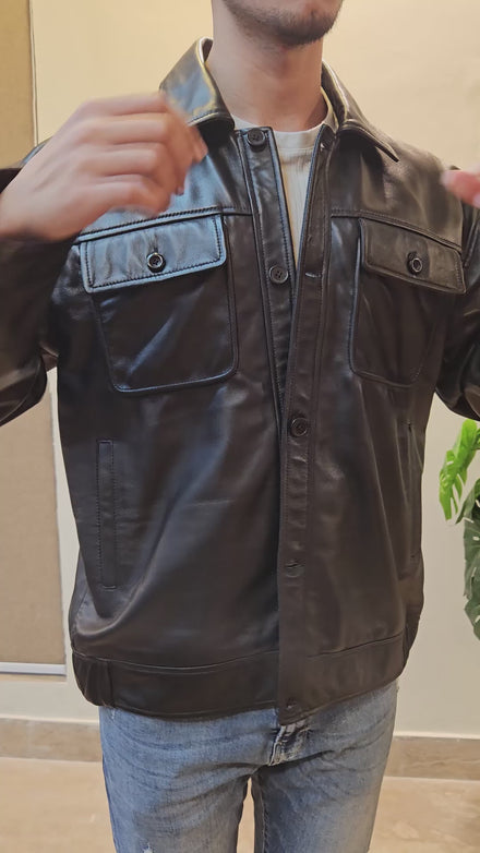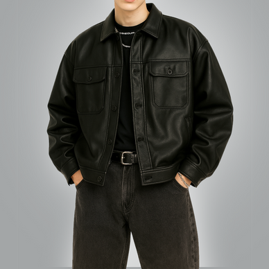 Men's Oversized Black Leather Bomber Jacket Baggy Streetwear Style, Relaxed Fit,Loose-Fit Fashion