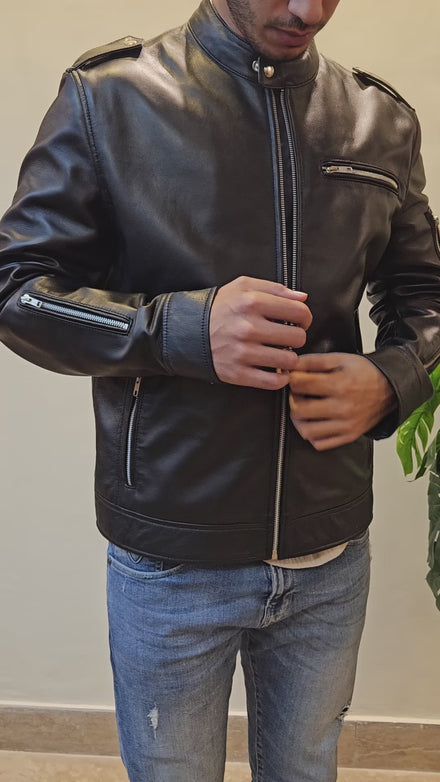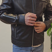 A hand-crafted Vintage Style Biker jacket designed with sharp lines, sturdy hardware, and a sleek fit. Perfect for men who want a powerful and stylish ride-ready look.